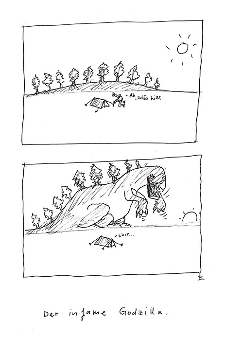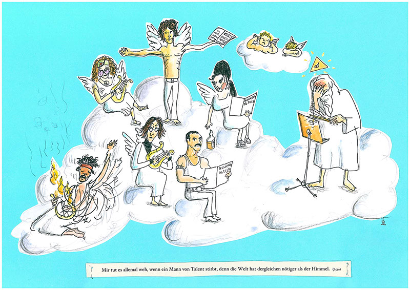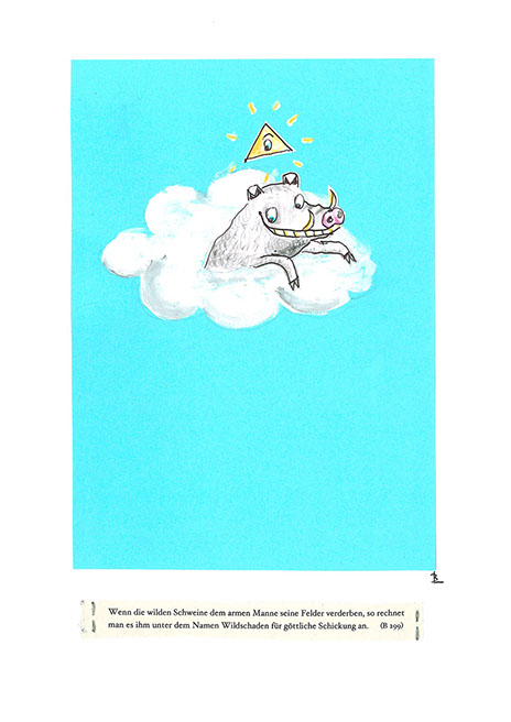 „Göttliche Schickung“, Tinte/Buntstift/Aquarell auf Papier und Karton, 21cm x 29,7 cm, 2014