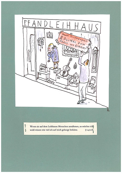 „Leihhaus“, Tinte/Aquarell, Papier auf Karton, 21cm x 29,7 cm, 2014