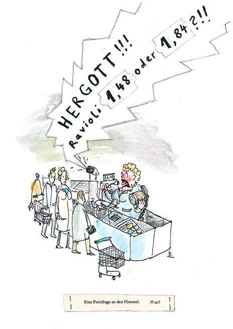 „Preisfrage“, Tinte/Aquarell auf Papier und Karton, 21cm x 29,7 cm, 2014